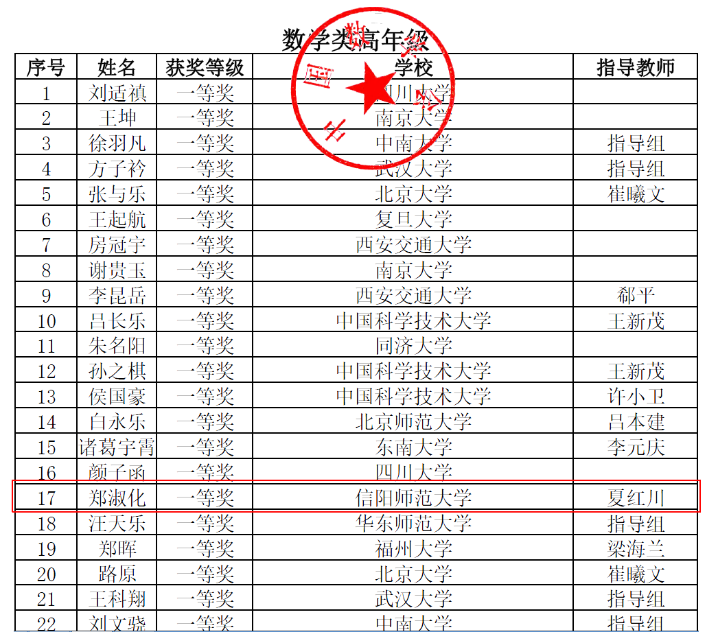 本次决赛,郑淑化是该组别河南省赛区唯一获得全国一等奖员工,也是同组别全国前20名中唯一的一名女生,领奖时受到颁奖嘉宾中国数学会理事长、中国科公司席南华院士的赞赏。