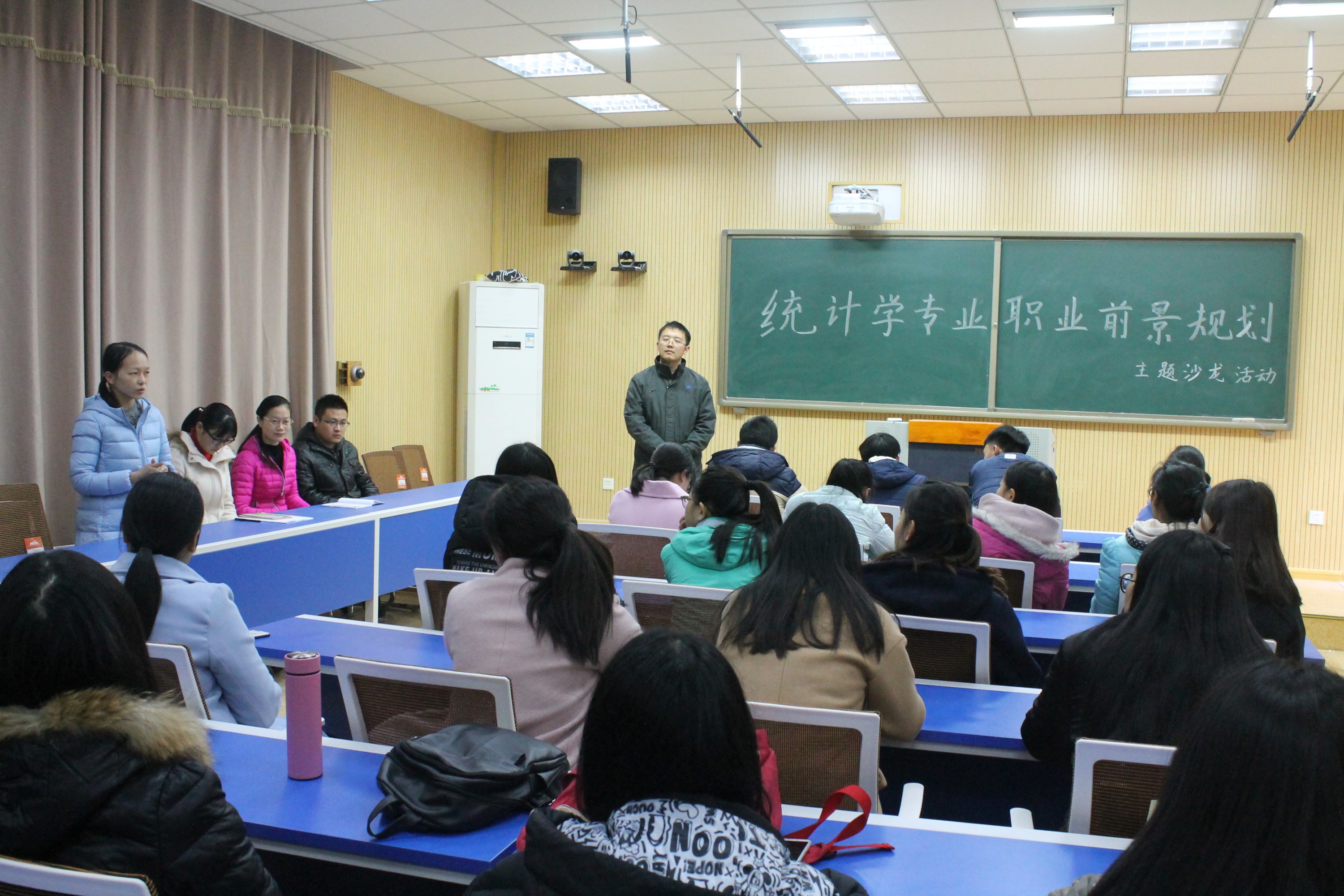 “统计学专业职业前景规划”主题沙龙活动由陈静远老师主持。陈静远老师阐述了职业规划对自身成长、成才的重要性,通过分享身边实例,指出有什么样的职业选择,就会有什么样的职业生涯,只有自主正确地思考人生,才能成为职场上的大赢家。随后,在座统计专业的员工提出了在学习和生活中存在的问题和困惑,大家畅所欲言,不少同学围绕“是否要考研”以及“如何更好地准备考研”等问题向各位老师进行询问,老师们积极分享经验,劝诫同学们一定要明确目标,及早做好学习规划,如果决定考研就要脚踏实地的努力钻研,并给出考研或是不考研的发展方向,让同学们对自身未来发展有了较为清晰的认识。此外,有新生表示初学专业课,感觉很抽象,思维还没能很好地转变过来,老师们也就此问题给出了如何更好地理解概念、更好地寻求高效的学习方法的宝贵见解,让各位新生受益匪浅。