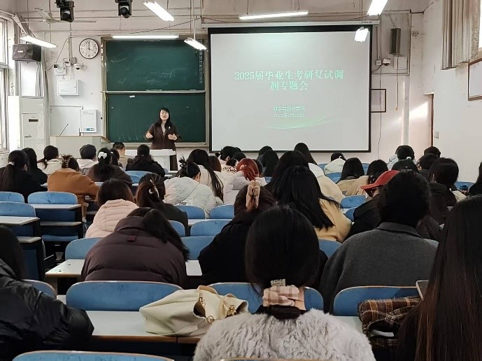 会上,谢艳丽老师对同学们在初试中取得的成绩表示热烈祝贺,并鼓励大家一鼓作气,认真筹备复试,向着最终的胜利前进。随后,谢老师围绕复试流程、简历制作、调剂策略和注意事项等关键内容,展开了细致入微的讲解。她建议同学们要保持积极心态,自信而努力,坚定而执着,去面对考研的后半程。