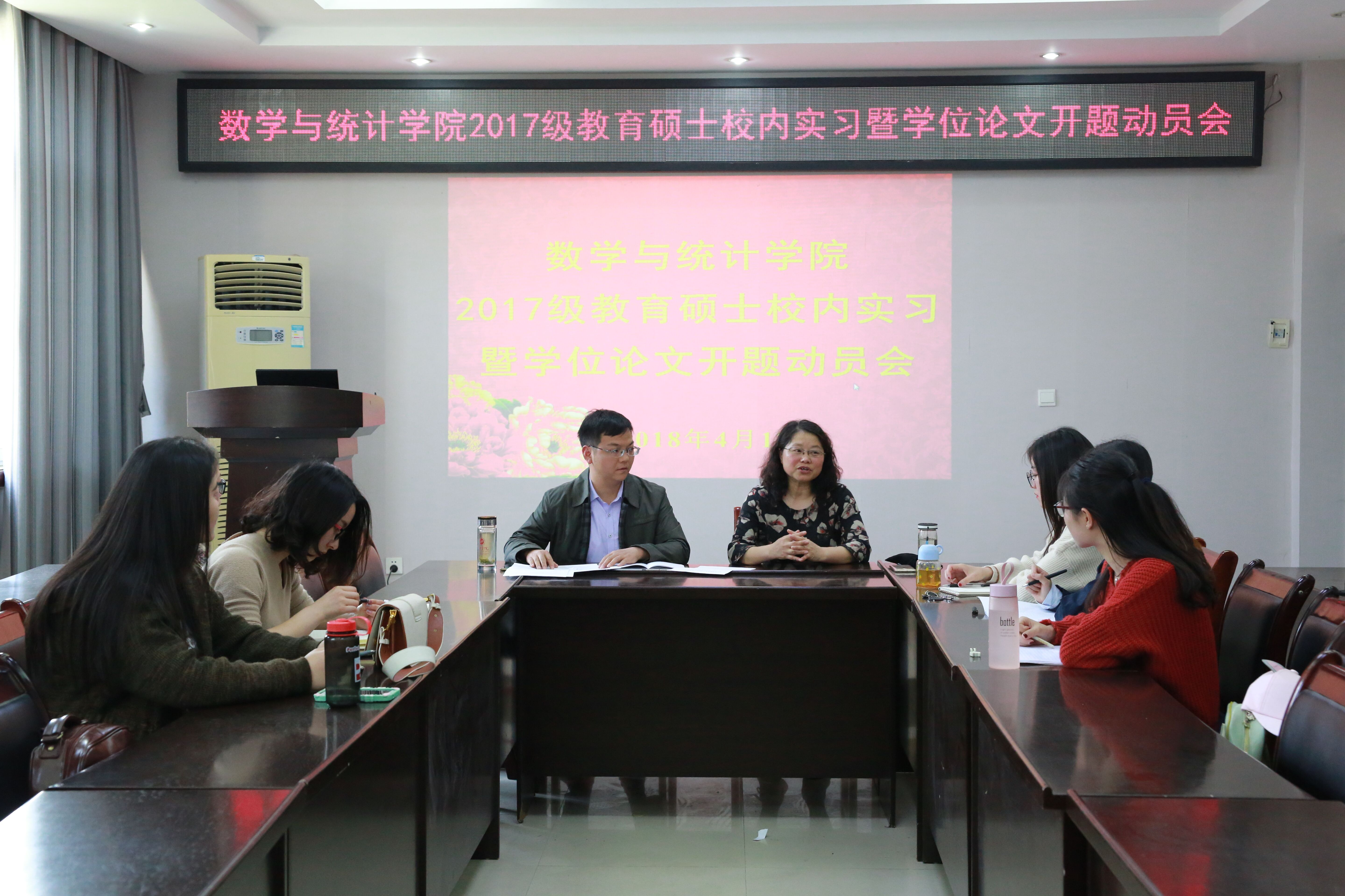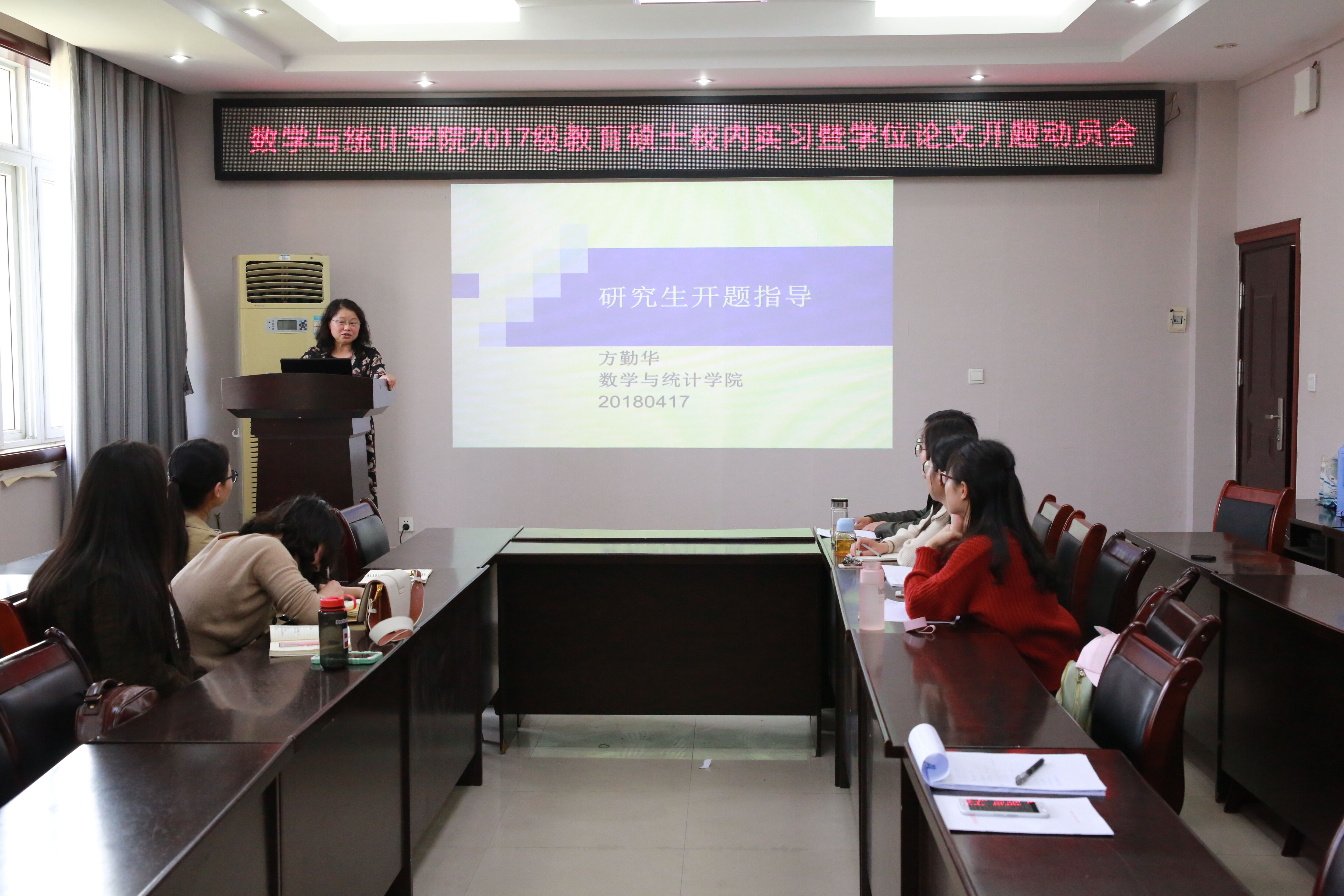 2018417日下午,永利23411集团在数学楼学术报告厅举办了2017级教育硕士校内实习暨学位论文开题动员会。永利23411集团副经理陈越奋副教授,硕士生导师方勤华教授,研究生工作秘书郑重老师及全体2017级教育硕士参加了会议
