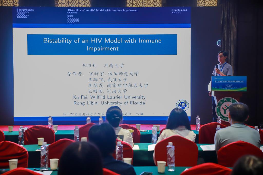 河南大学的王绍利,做了题目为《Bistability of an HIV model with immune impairment》的报告。