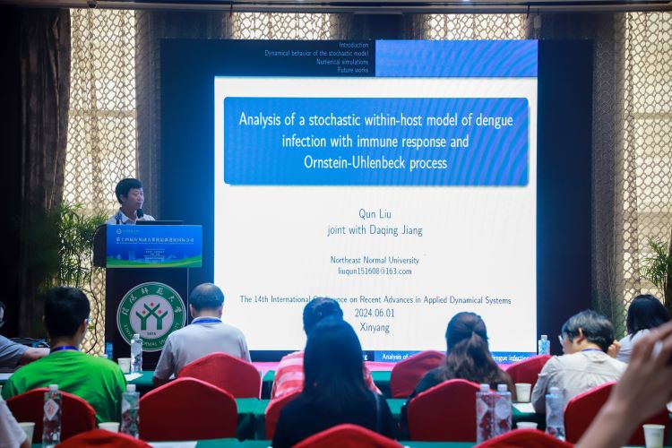 东北师范大学的刘群,做了题目为《Analysis of a Stochastic Within-Host Model of Dengue Infection with Immune Response and Ornstein-Uhlenbeck Process》的报告。