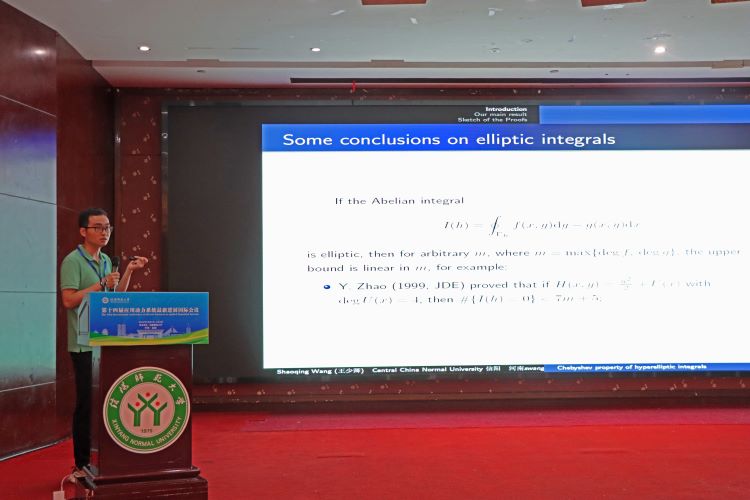 华中师范大学的王少卿,做了题目为《On the Chebyshev property of some hyperelliptic integrals》的报告。