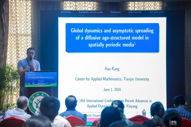 天津大学的康浩,做了题目为《Global dynamics and spreading speeds of a diffusive age-structured model》的报告。