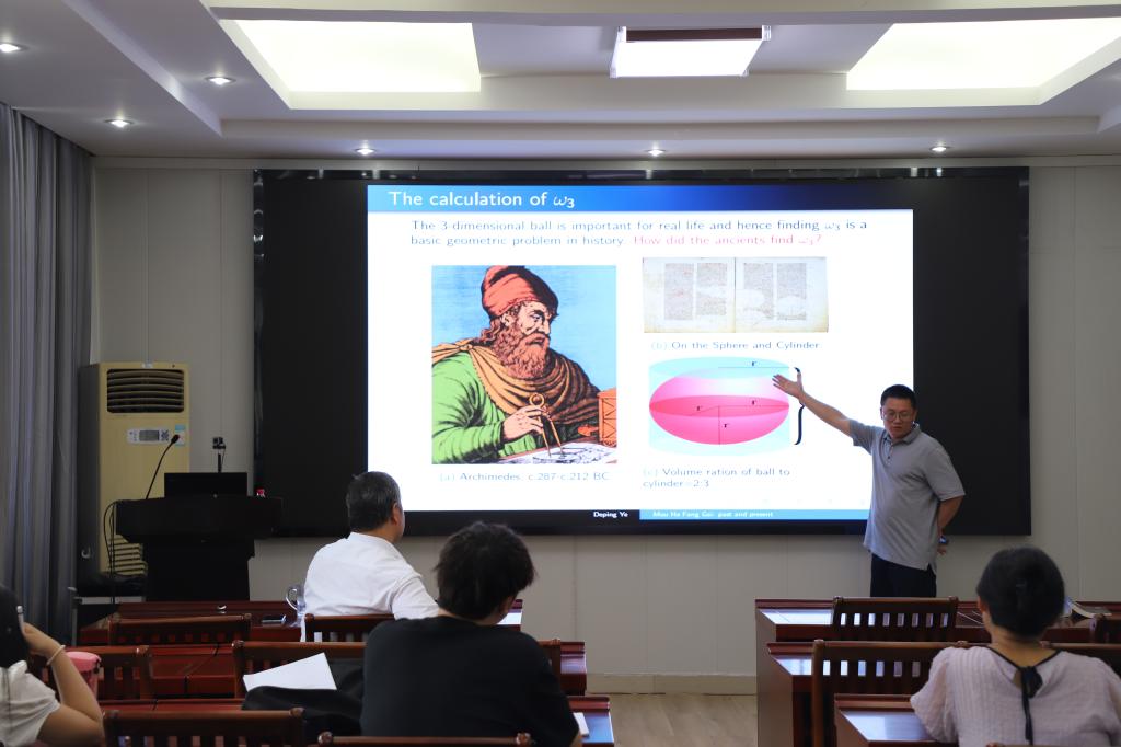 7月18日,应永利23411集团邀请,Deping Ye 教授在数学楼315学术报告厅作了题为“Mou He Fang Gai: A Mathematical Legend Over Thousands of Years”的学术报告。报告会由永利23411集团副经理韩英波教授主持,部分老师及研究生聆听了此次报告。