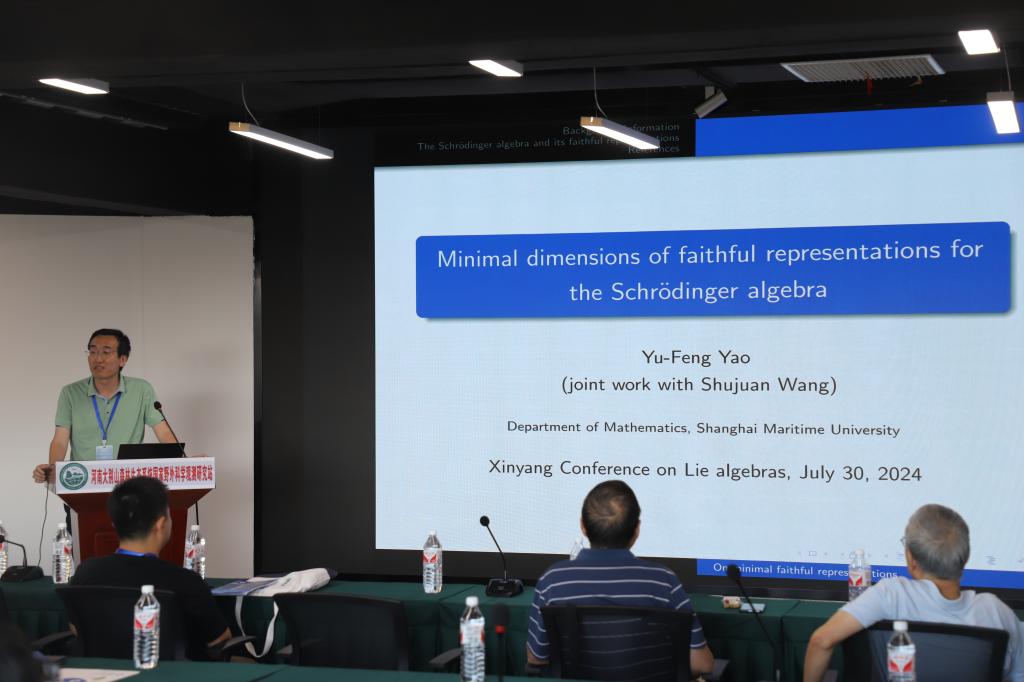 上海海事大学的姚裕丰做了题目为《Minimal dimensions of faithful representations for the Schrodinger algebra》的报告。