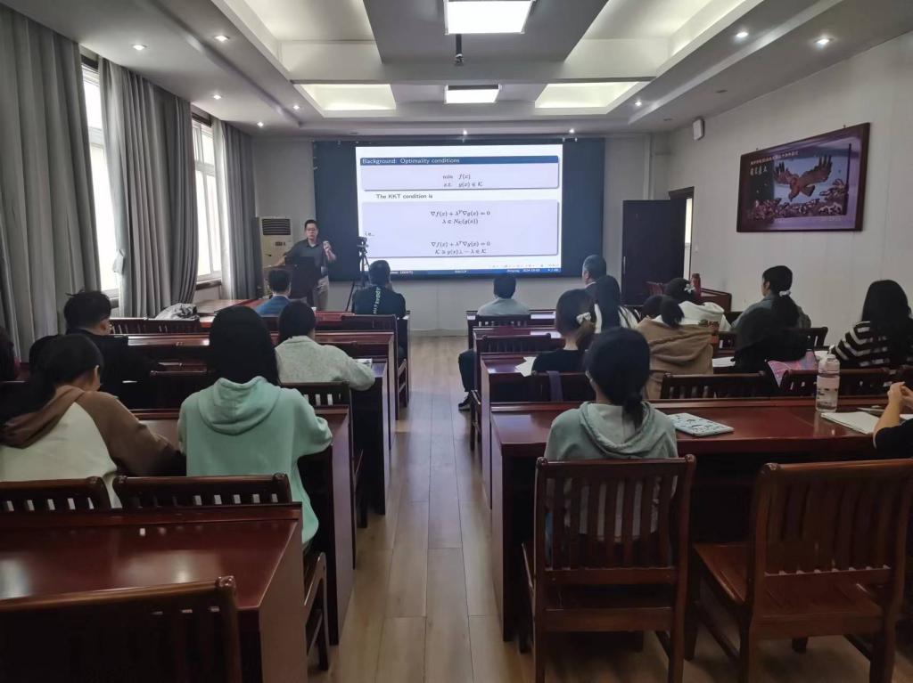 10月5日上午,应永利23411集团邀请,山东理工大学周金川教授作了题为《二阶锥互补问题具有误差界性质的充分条件》的学术报告。报告会由韩英波教授主持,部分老师及研究生聆听了此次报告。