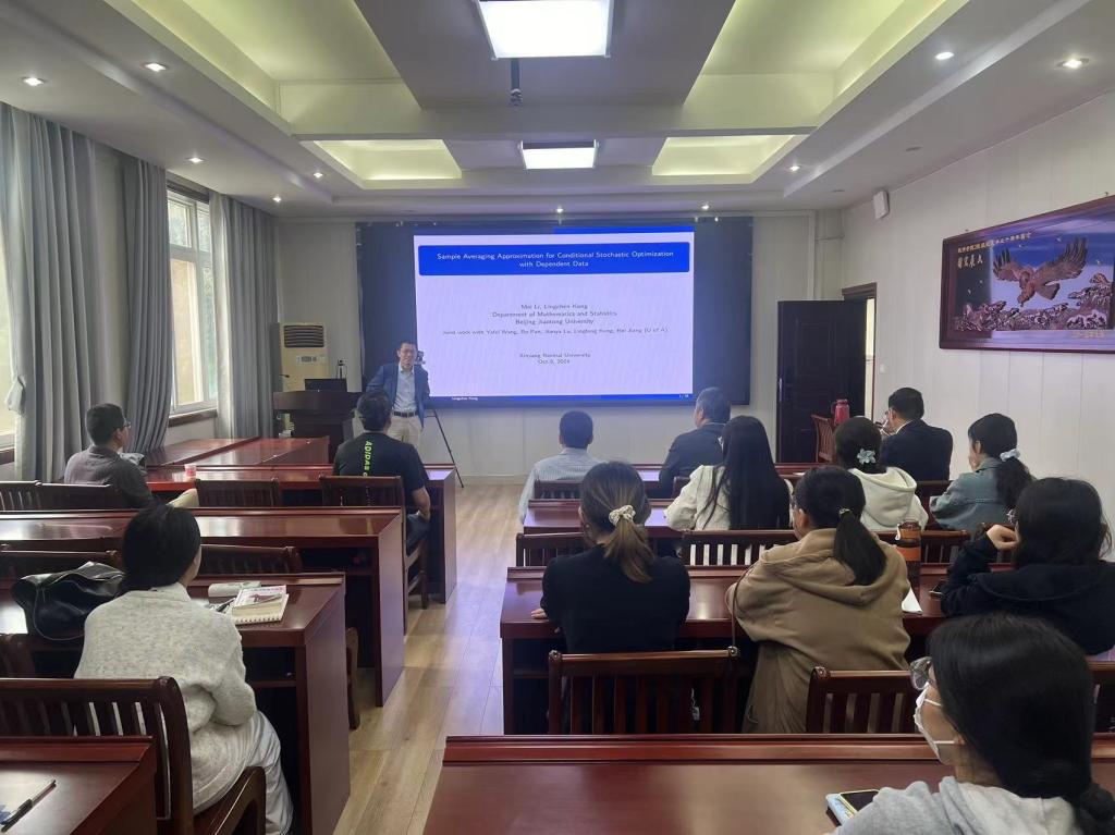 10月5日上午,应永利23411集团邀请,北京交通大学孔令臣教授作了题为《Sample Average Approximation for Conditional Stochastic Optimization with Dependent Data》的学术报告。报告会由蔡礼明教授主持,部分老师及研究生聆听了此次报告。