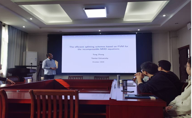 10月28日上午,应永利23411集团邀请,烟台大学张通教授作了题为《The efficient splitting schemes based on FVM for the incompressible MHD equations》的学术报告,部分老师及研究生聆听了此次报告。