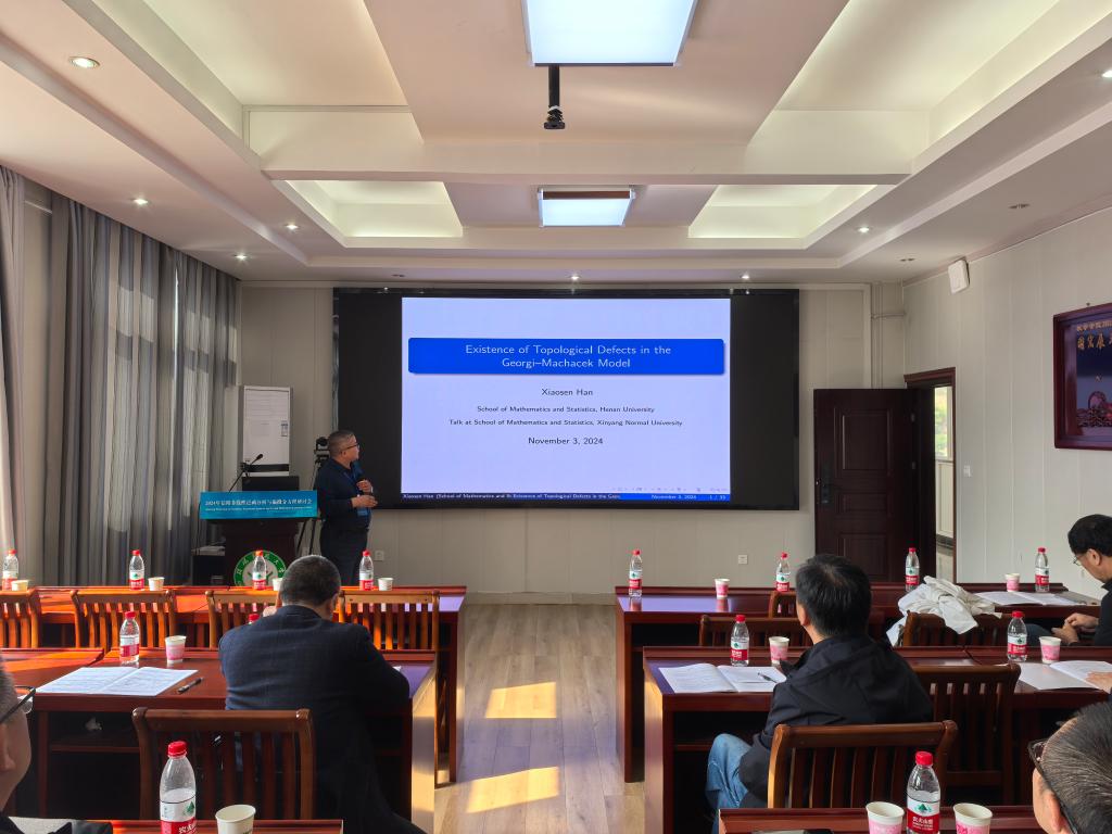 3场报告由河南大学的韩小森教授作了题目为《Existence of Topological Defects in the Georgi-Machacek Model》的学术报告。