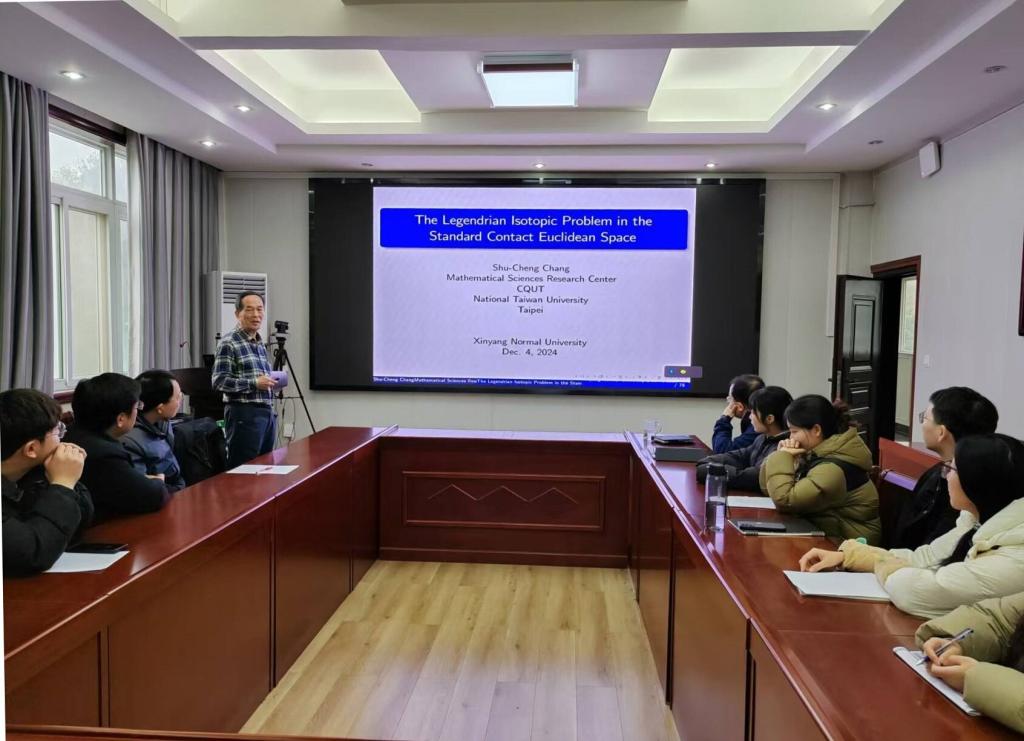 12月4日上午,应永利23411集团邀请,台湾大学/重庆理工大学张树城教授作了题为《The Legendrian Isotopic Problem in the Standard Contact Euclidean Space》的学术报告。报告会由韩英波教授主持,部分教师及研究生聆听了此次报告。