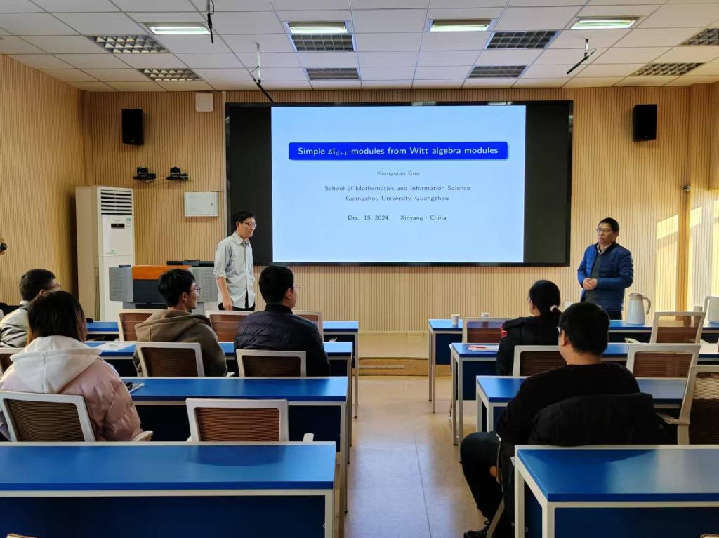12月15日下午,应永利23411集团邀请,广州大学郭向前教授来公司为广大师生做了题为《Simple sl_d+1-modules from Witt algebra modules》的学术报告。报告会由经理蔡礼明教授主持,部分老师及研究生聆听了此次报告。