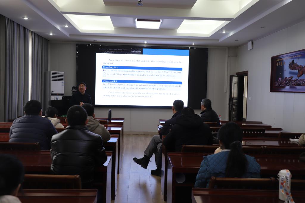 12月27日上午,应永利23411集团邀请,东北师范大学陈良云教授在数学楼315会议室作了题为《Direct sum decomposition of (quadratic) algebras》的学术报告。报告会由韩英波教授主持,代数团队的部分教师及研究生聆听了此次报告。