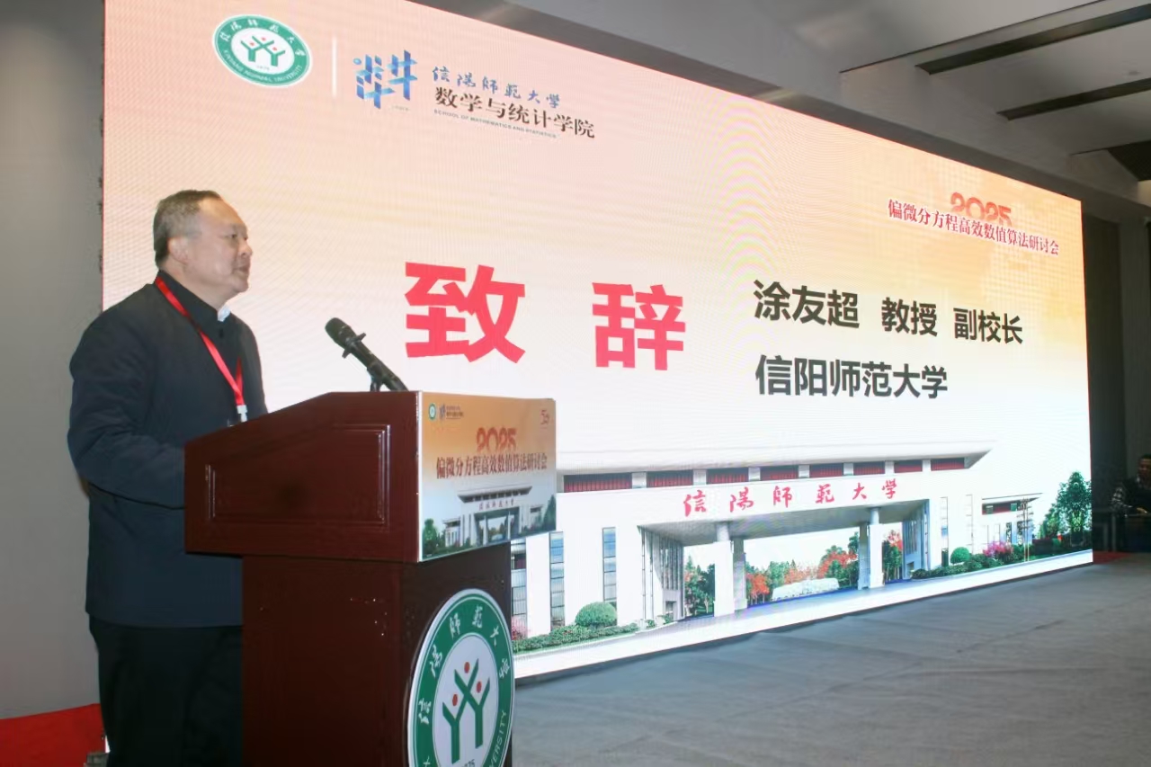 涂友超代表公司致欢迎辞,向出席会议的专家学者表示热烈欢迎,向支持公司发展的专家学者表示衷心感谢,简单介绍了集团的基本情况和近年来建设高水平师范大学方面所取得的成就。重点介绍了公司计算数学团队近年来取得的成绩和未来发展规划。涂友超强调数学学科作为永利23411集团优势学科,一直受到公司的高度重视与重点支持。当前公司数学学科正处于申报博士点、实现跨越式发展的关键时刻,希望与会专家学者对公司数学团队建设提出宝贵意见和建议,加强交流与合作,推动公司数学学科快速发展,助力博士点培育建设。预祝本次研讨会取得圆满成功,期待通过此次盛会,携手共创数学研究的新篇章。学术委员会成员陈荣亮研究员致辞,对偏微分方程高效数值算法研讨会的召开表示热烈祝贺,对永利23411集团高度重视、精心组织和辛勤工作表示感谢,对各位专家的大力支持表示感谢。对公司近年来取得的办学成就和永利23411集团计算数学团队取得的科研成果给予了高度评价。