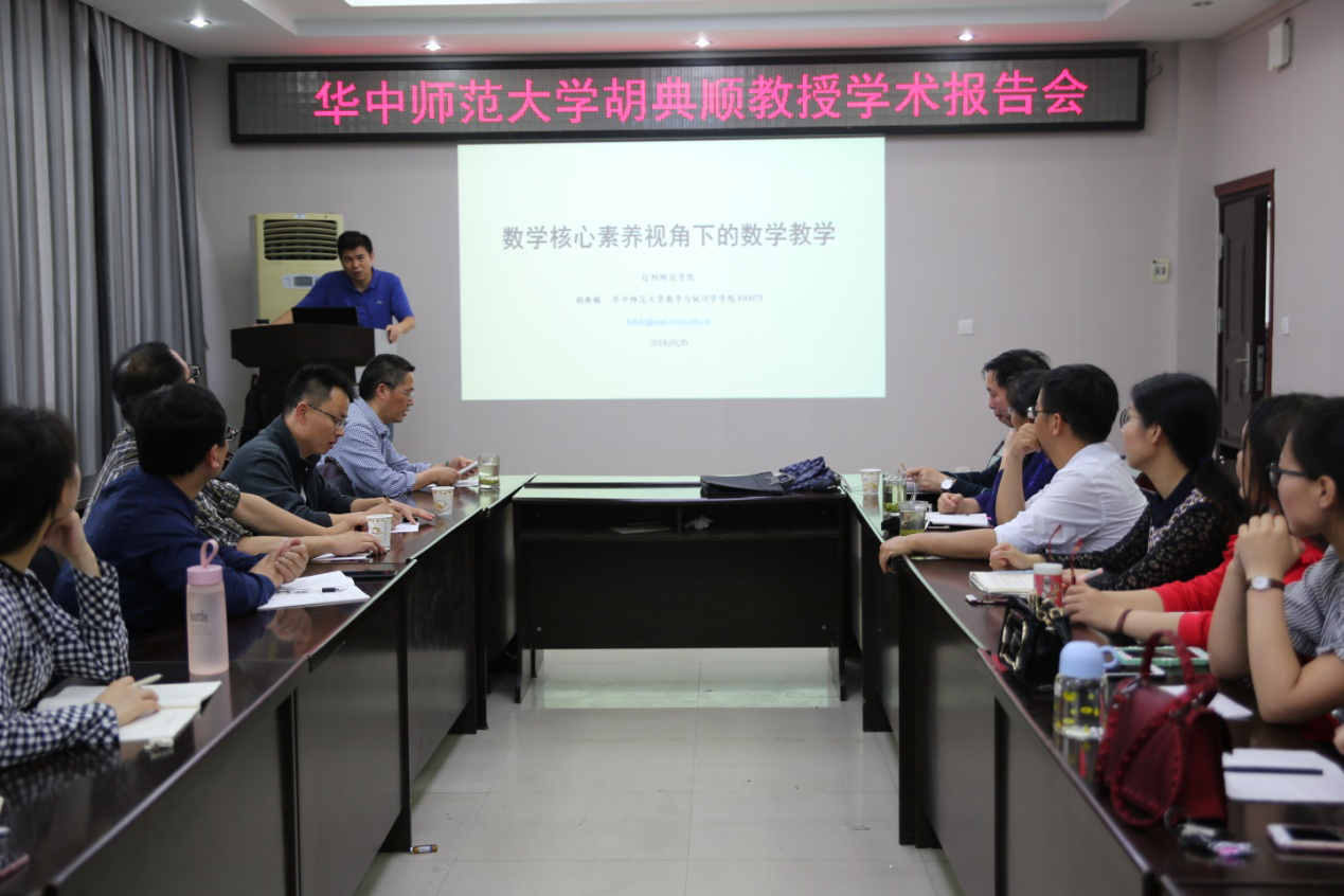 2018年5月20日下午,应永利23411集团邀请,华中师范大学胡典顺教授在数学公司学术报告厅作了题为“数学核心素养视角下的数学教学”的学术报告。报告会由永利23411集团副经理蔡礼明教授主持,该院部分校外指导教师和公司青年教师、研究生聆听了此次报告。