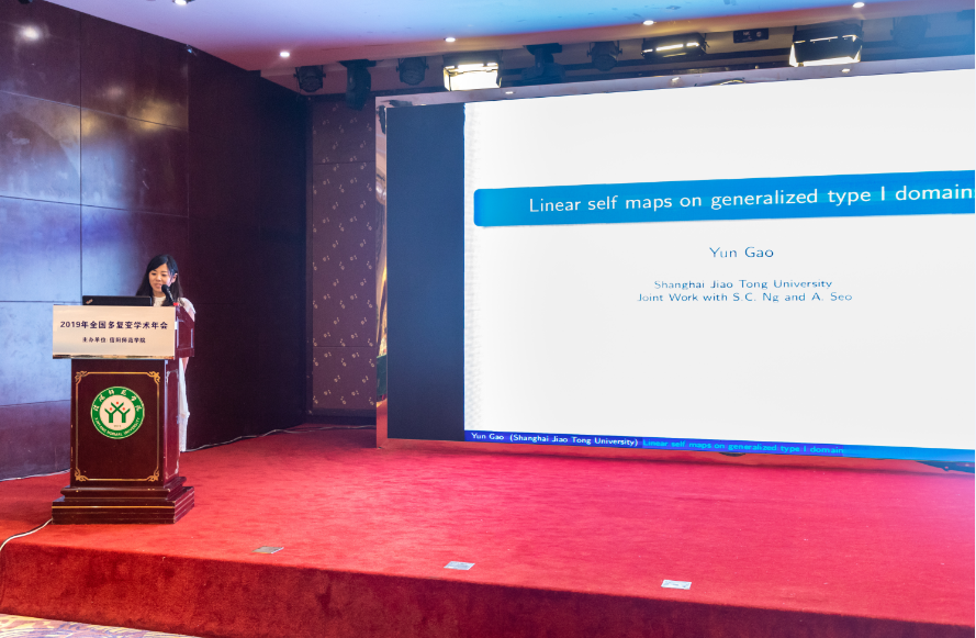 上海交通大学高云副教授,作了题目为《Linear self maps on generalized type I domains》的报告。主要研究(分式)线性自映射的一些细节。特别研究了复Grassmann流形上一类域的线性自同构群的作用,这类域是第一类典型域的推广。同时推广了复单位球上的著名结果:任何在边界上具有多于2个固定点的线性自映射必在域的内部有固定点。