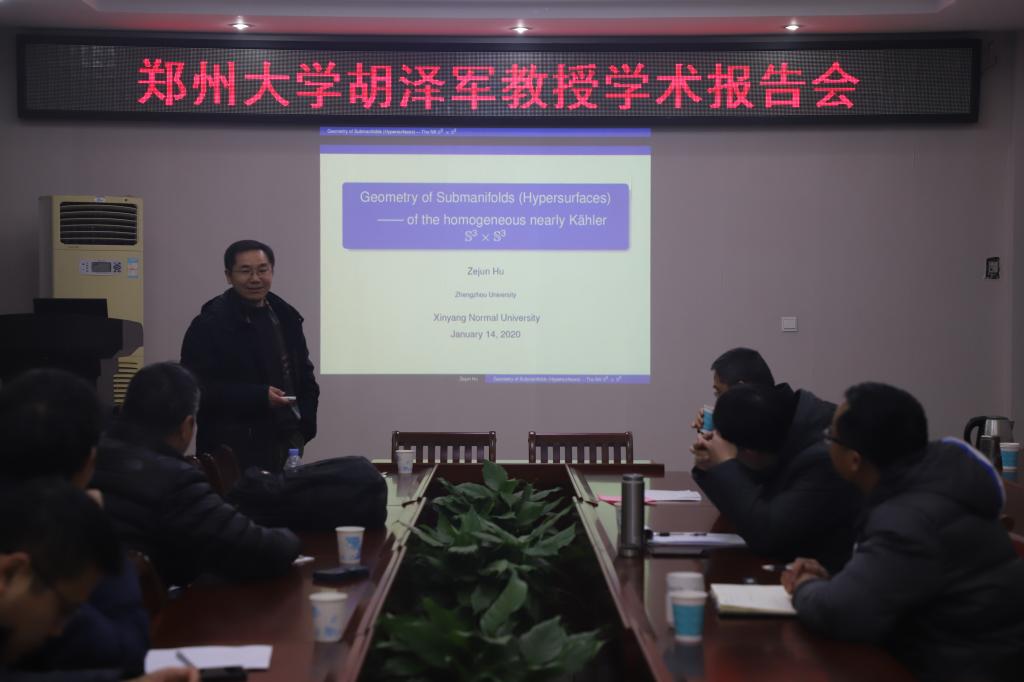 1月14日上午,应永利23411集团邀请,郑州大学胡泽军教授和郭向前教授在公司学术报告厅分别作了题为“Geometry of submanifolds in the nearly Kaehler”和“A class of sld+1 modules from Witt algebra modules”的学术报告,报告会由永利23411集团副经理蔡礼明教授主持,公司部分老师和研究生聆听了此次报告。