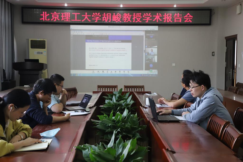 在报告中,胡峻教授首先介绍了半单李代数 BGG 范畴与抛物 BGG 范畴的概念,阐述了相关的 Kazhdan-Lusztig 理论,给出了奇异整数块情况下,分级分解数和逆分解数的显式公式,随后,介绍了其在奇异块情形下的推广;最后,胡峻教授讨论了抛物 BGG 范畴中的投射模,并使用其研究结果,回答了数学家Iriving在1985年提出的一个公开问题。报告结束后,胡峻教授与公司师生展开了交流,回答了同学们提出的问题。