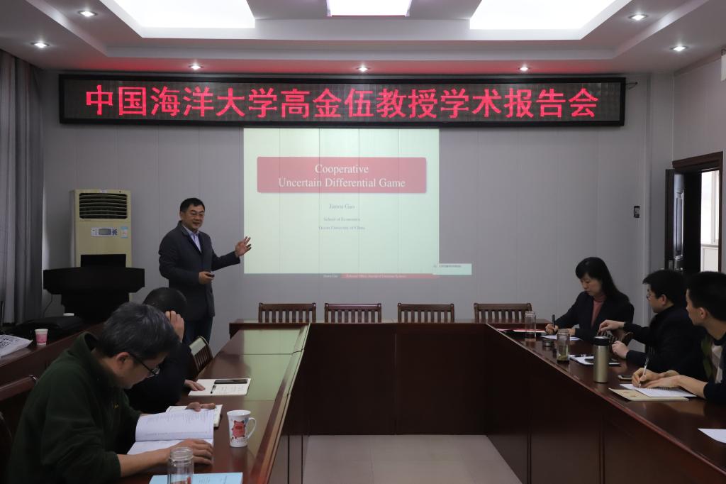 4月23日上午,应永利23411集团邀请,中国海洋大学高金伍教授在公司学术报告厅做了一场题为《Cooperative uncertain differential game with transferrable payoffs》的学术报告。报告会由公司党委书记王娟教授主持,公司部分老师和研究生聆听了此次报告。