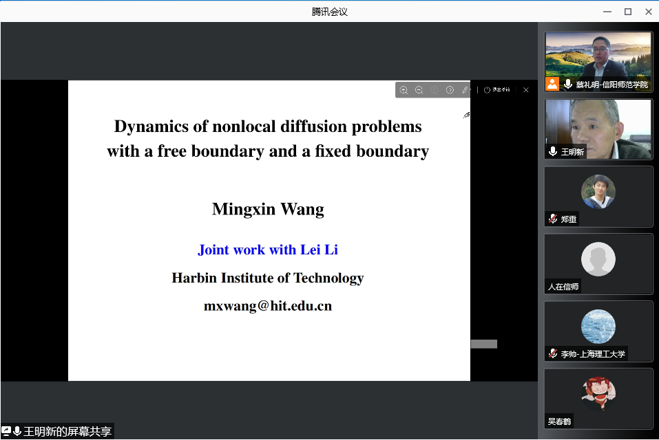 11月5日上午,应永利23411集团邀请,哈尔滨工业大学王明新教授通过腾讯会议平台为公司研究生及相关研究方向老师作了题为《Non-local diffusion problems with a free boundary and a fixed boundary》的学术报告。报告会由永利23411集团经理蔡礼明教授主持。