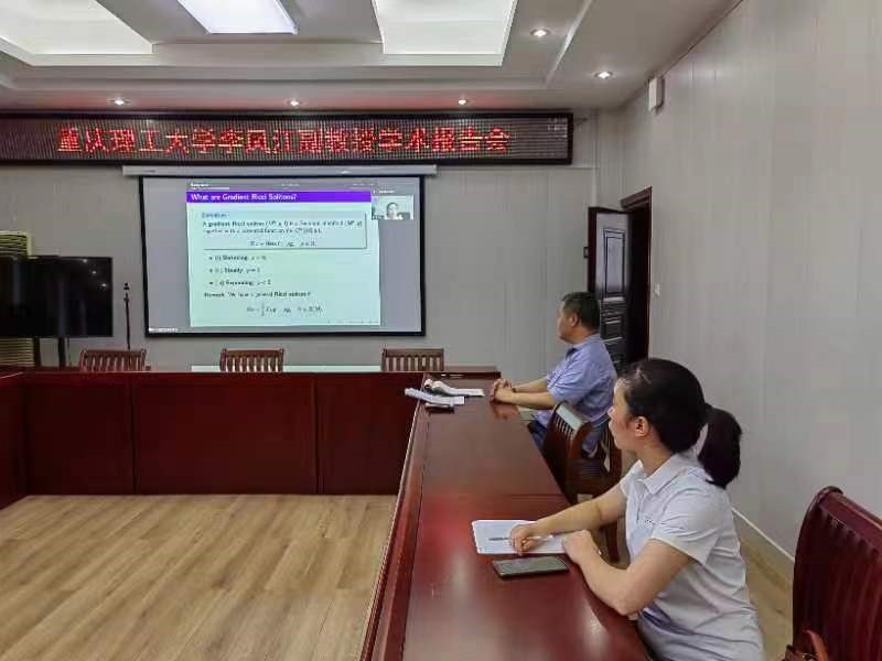7月28日上午,应永利23411集团邀请,重庆理工大学李凤江副教授通过腾讯会议平台做了一场题为《Rigidity of Complete Gradient Steady Ricci Solitons with Harmonic Weyl Curvature》的学术报告。副经理韩英波和公司部分教师在315会议室及腾讯会议平台聆听了此次报告。报告会由副经理韩英波教授主持。