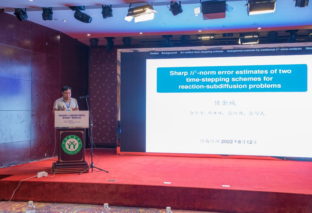 河南财经政法大学任金城,做了题目为《Sharp H1-norm error estimates of two time-stepping schemes for reaction-subdiffusion problems》的报告。