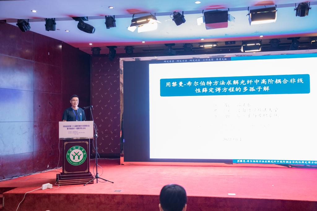 河南财经政法大学郭汉东,做了题目为《用黎曼-希尔伯特方法求解光纤中高阶耦合非线性薛定谔方程的多孤子解》的报告。