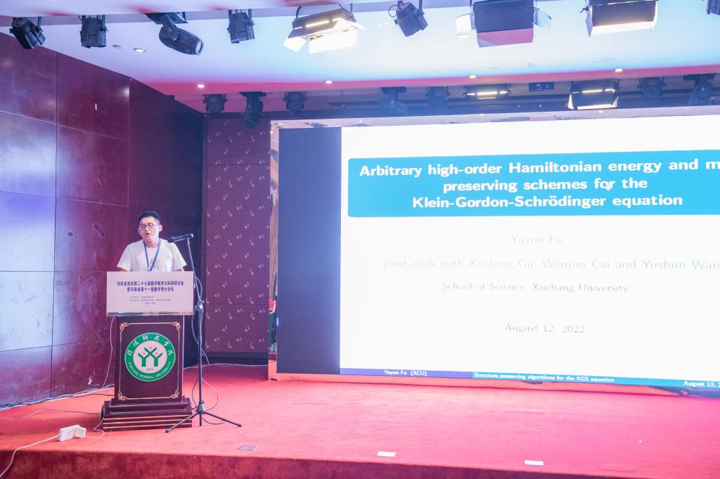 许昌公司付亚运,做了题目为《Arbitrary high-order mass and energy preserving schemes for the Klein-Gordon-Schrodinger equations》的报告。