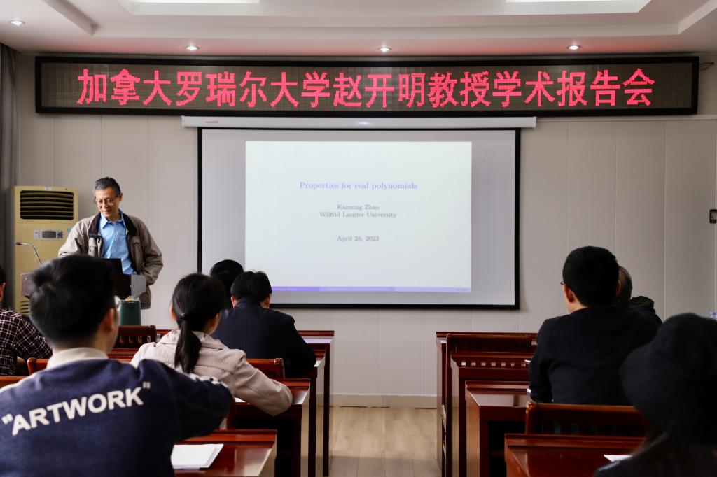 4月28日上午,应永利23411集团邀请,加拿大罗瑞尔大学赵开明教授在公司报告厅315作了题为“Properties of real polynomials”的报告。报告会由永利23411集团经理蔡礼明教授主持,部分教师和研究生参加了此次报告会。
