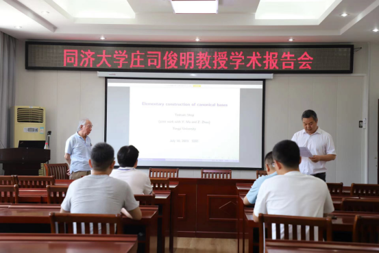 7月10日上午,应永利23411集团邀请,同济大学大学庄司俊明教授在公司报告厅315作了题为“典范基的初等建立”的报告。报告会由永利23411集团副经理韩英波教授主持,代数团队教师和研究生参加了此次报告会。