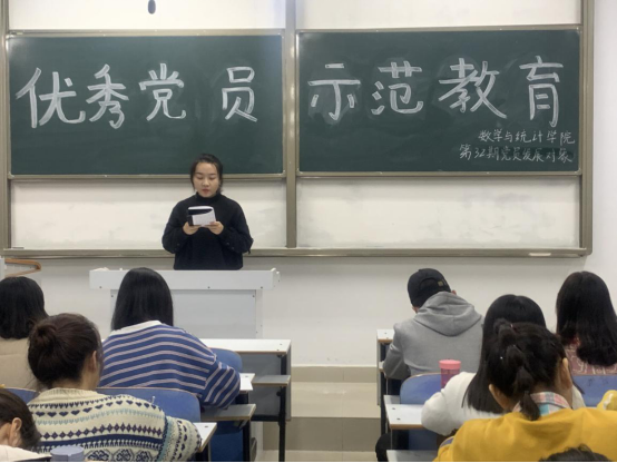 10月17日,根据第32期党员发展对象培训1班的教学计划,永利23411集团 “优秀党员示范教育”为主题,邀请优秀党员2016级数学与应用数学2班海兰等4名正式党员为第32期党员发展对象做分享交流。