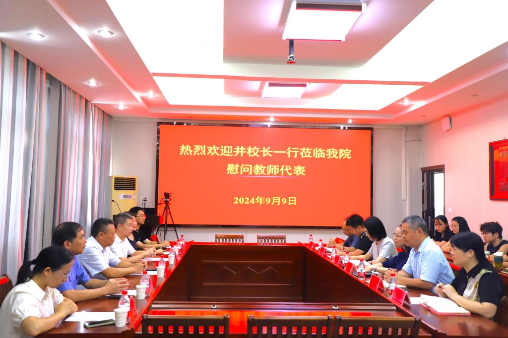 9月9日上午,在第40个教师节到来之际,副董事长井强山带领董事长办公室、人事处、教务处等部门负责同志到公司走访慰问,向全院教师致以节日的祝福和诚挚的问候。