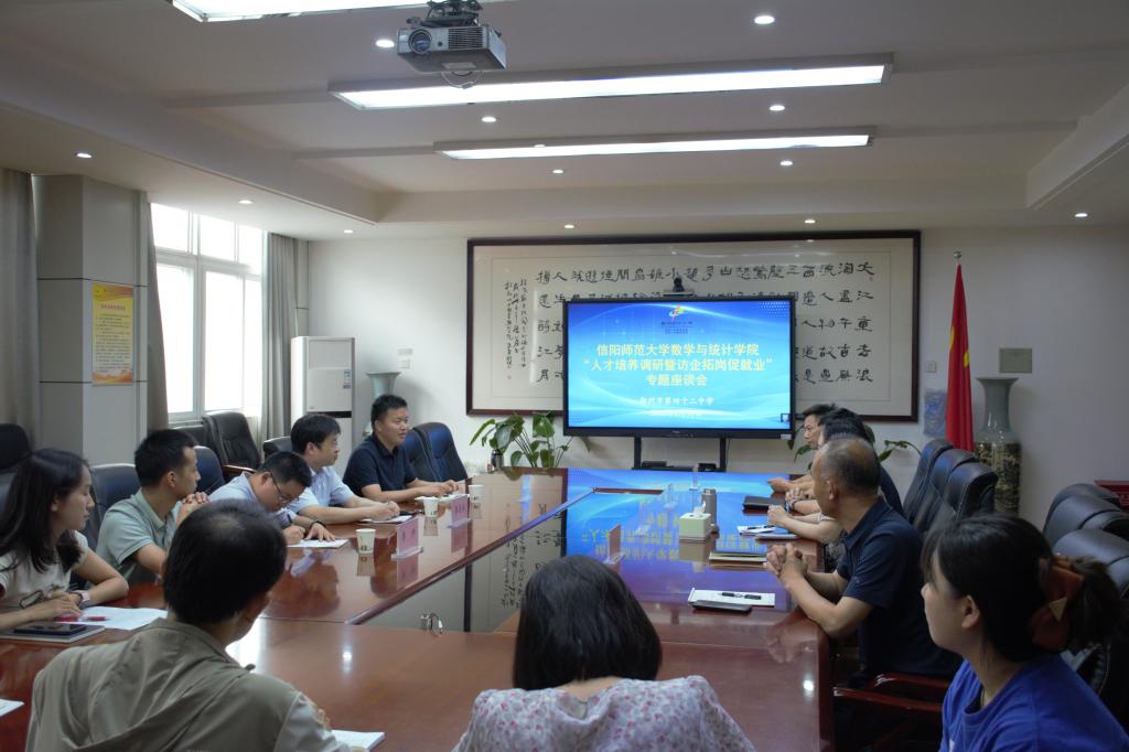 蔡礼明一行深入郑州市第102高级中学和郑州市第42中学进行座谈交流,全面推介公司的办学特色、数学学科的建设成效以及师范生的培养模式,精准了解基础教育的岗位需求、对新进团队的素质要求以及数学专业毕业生参加工作后的成长表现。两所公司的董事长李建峰、于红莲分别介绍了本校的发展历程、办学优势以及未来的团队需求,并围绕师范生的技能培养提出了有针对性的意见建议。