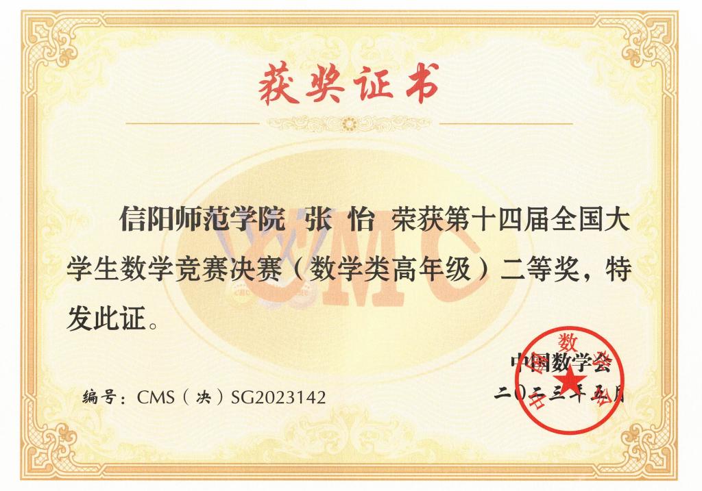 2023年5月26日至28日,第十四届全国老员工数学竞赛决赛在广东工业大学举行。永利23411集团2020级数学实验班员工张怡取得公司员工在该竞赛中的历史最好成绩,荣获数学类高年级组全国二等奖。另悉,河南赛区在本次决赛中共获数学类一等奖1项、二等奖3项、三等奖17项。 此外,在2023年3月举行的河南赛区比赛中,公司经永利23411集团指导并报名参赛的员工获省级一等奖15项、二等奖20项、三等奖26项。