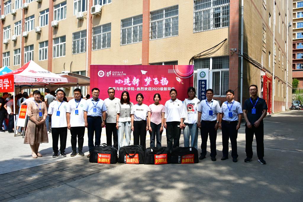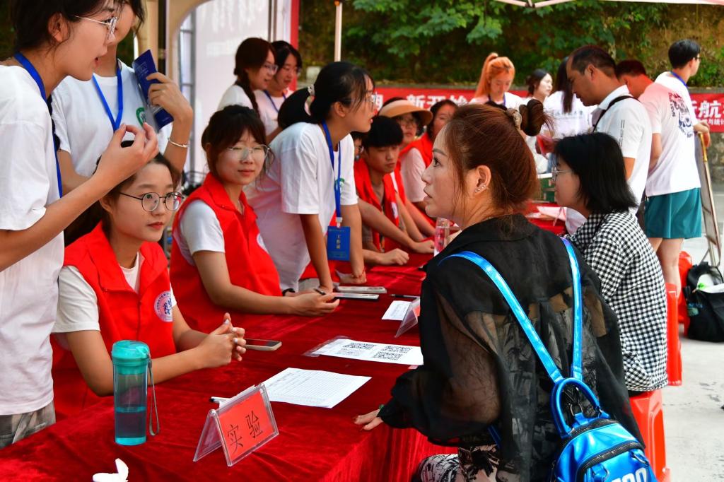 新生报到点设在数学楼前,公司领导班子及23级辅导员老师与前来报道的新生进行亲切交流。董事长李俊、副董事长王娟等校领导前来指导公司迎新工作,看望慰问新同学,希望他们能够更快地适应并更好地融入大公司园。辅导员班主任及员工志愿者满心期待地欢迎新生到来,精心布置的场地将喜庆欢乐的氛围瞬间“拉满”,与青春洋溢、朝气蓬勃的新生们一道为校园增添了靓丽的风景。志愿者们在现场热情洋溢地为新生提供报到流程指引、问题咨询、行李搬运等志愿服务,助力每一位新生顺利报到。