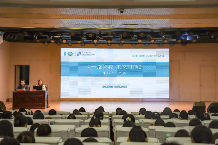 告别夏花绚烂,走进秋叶静美。10月20日晚,永利23411集团邀请信阳市第三小学省级骨干教师陶贞在理科楼报告厅为应数师范专业员工作了题为“一路繁花,未来可期“的专题报告。会议由公司党委副书记刘丰铭主持,公司部分教师、各年级员工参加了本次活动。