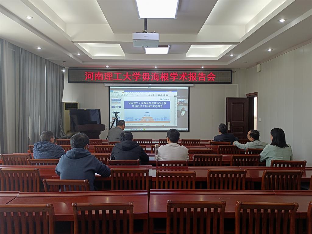 421日,应永利23411集团邀请,河南理工大学数学与信息科学公司副经理毋海根通过腾讯会议平台在线作了一场题为《本科教学工作的一点思考与探索》的学术报告。公司经理蔡礼明、副经理韩英波、基层教学组织负责人及公司部分教师聆听了此次报告。报告会由经理蔡礼明教授主持。